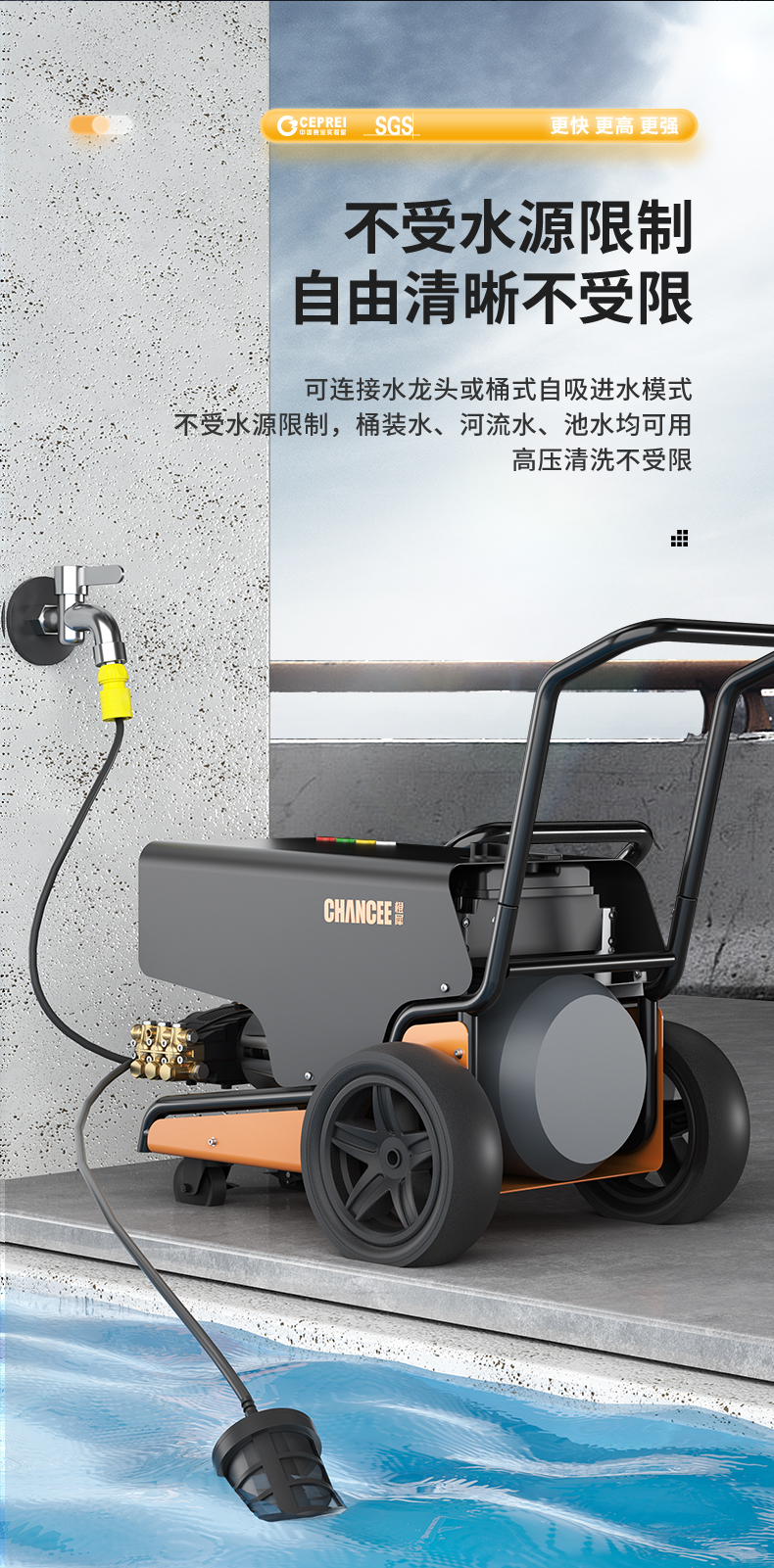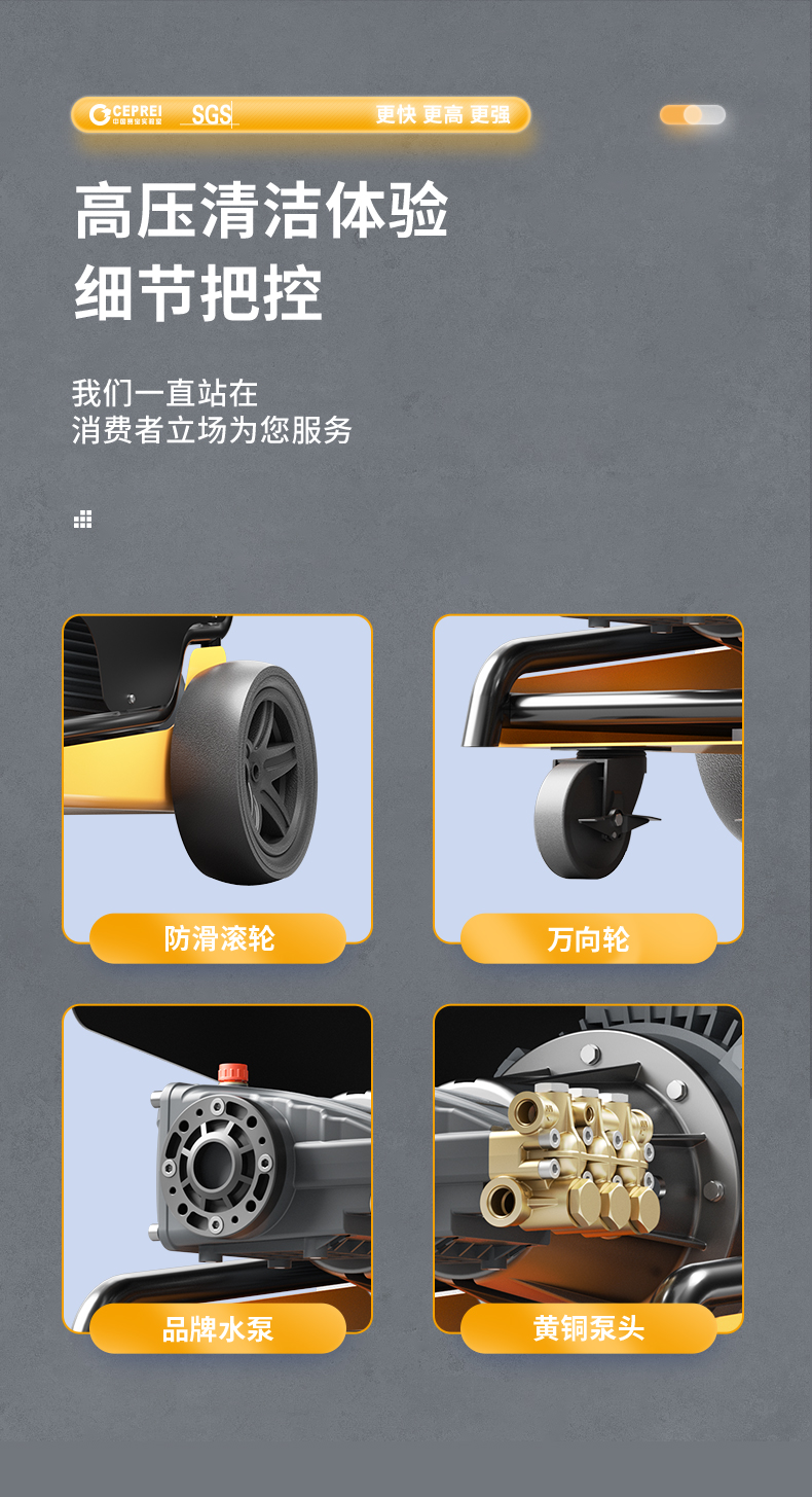橙犀高壓清洗機(jī) YG3515:強(qiáng)勁動(dòng)力24小時(shí)可聯(lián)系工作,高壓不停機(jī),還擁有溜達(dá)強(qiáng)勁優(yōu)勢(shì),干凈快速清潔,工業(yè)級(jí)純銅,增壓自吸泵快速供水。