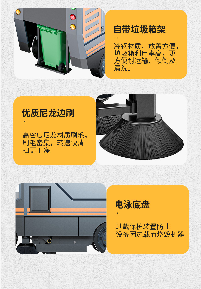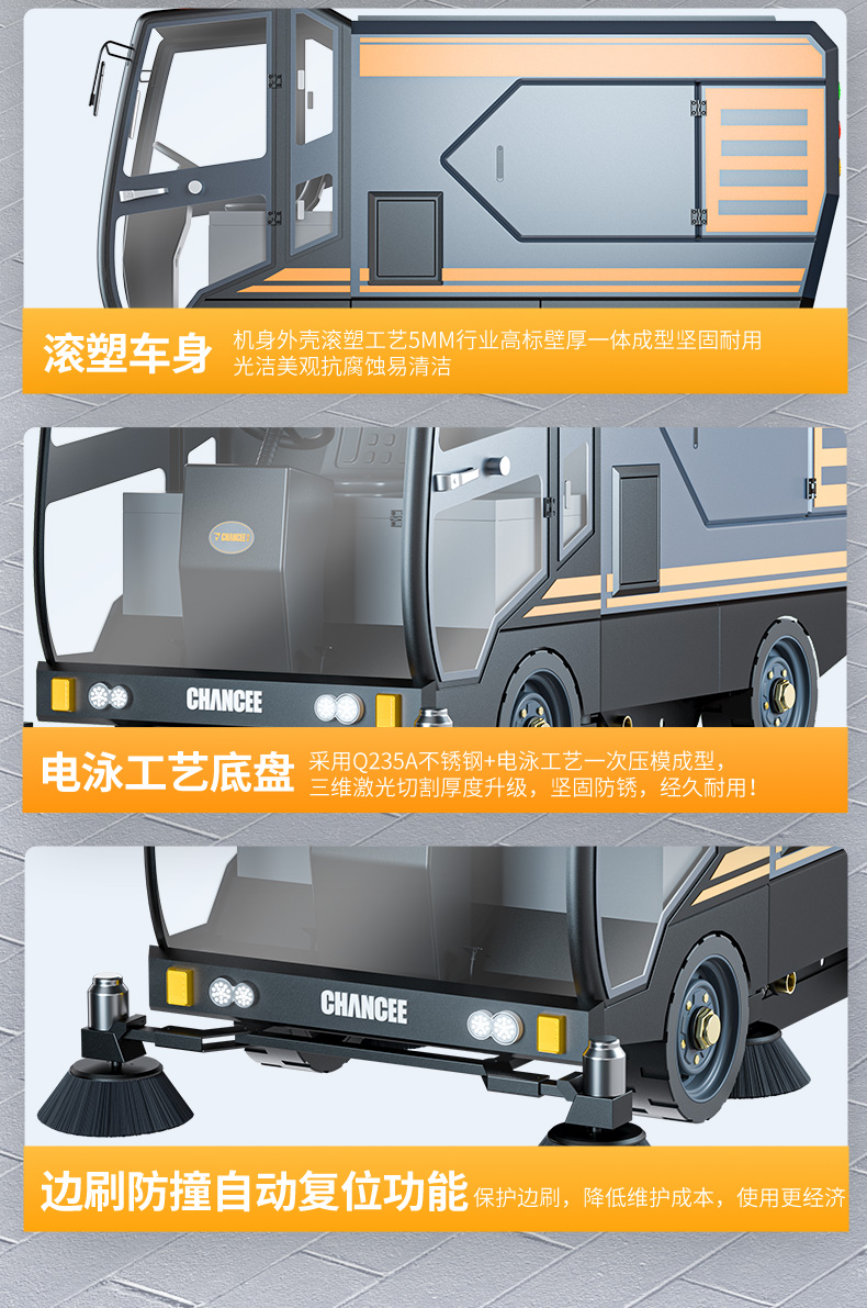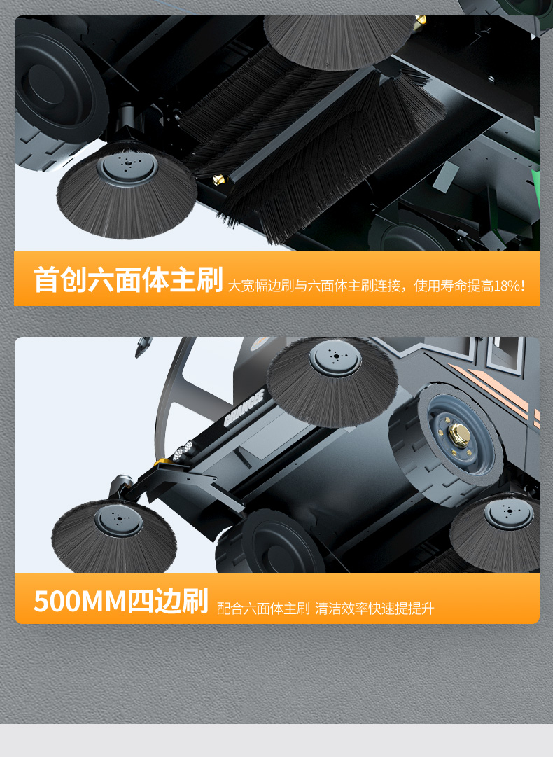 橙犀U220C 駕駛式掃地機:橙犀駕駛式掃地機,全封閉模式可以抵抗惡劣天氣,大寬幅主刷首創六面體主刷鏈接,使用壽命提升18%,+500mm四邊刷清潔效果大幅度提升,清潔更高效快捷。